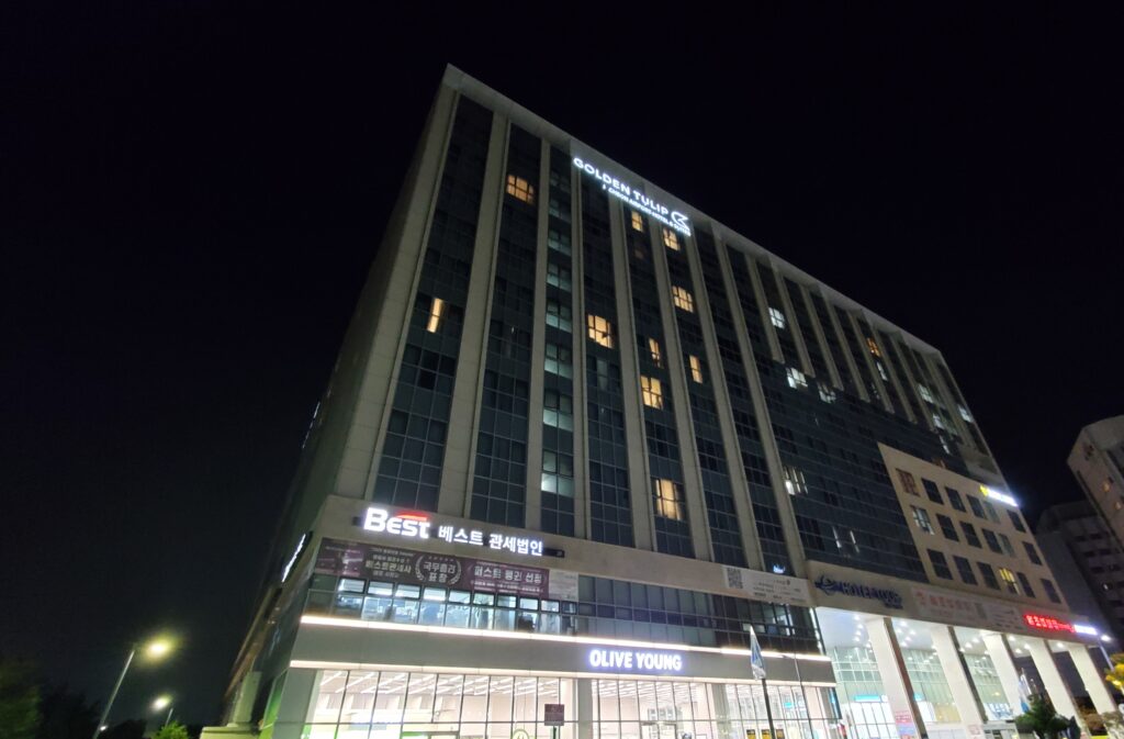 到着は夜だったので初日は空港近くのホテルを予約しました。空港からは電車で3駅目の雲西(ウンソ)駅にある「ゴールデンチューリップ仁川エアポートホテル」です。駅出てすぐのところにあってとても便利です。事前に頼めば空港まで無料送迎も対応してくれるようですのでトランジットにも便利そうです。最近リニューアルしたようでホテルもきれいで部屋も十分な広さで快適なホテルでした。値段もツインで1万円ほど(朝食無料金)とリーズナブルでお勧めです。